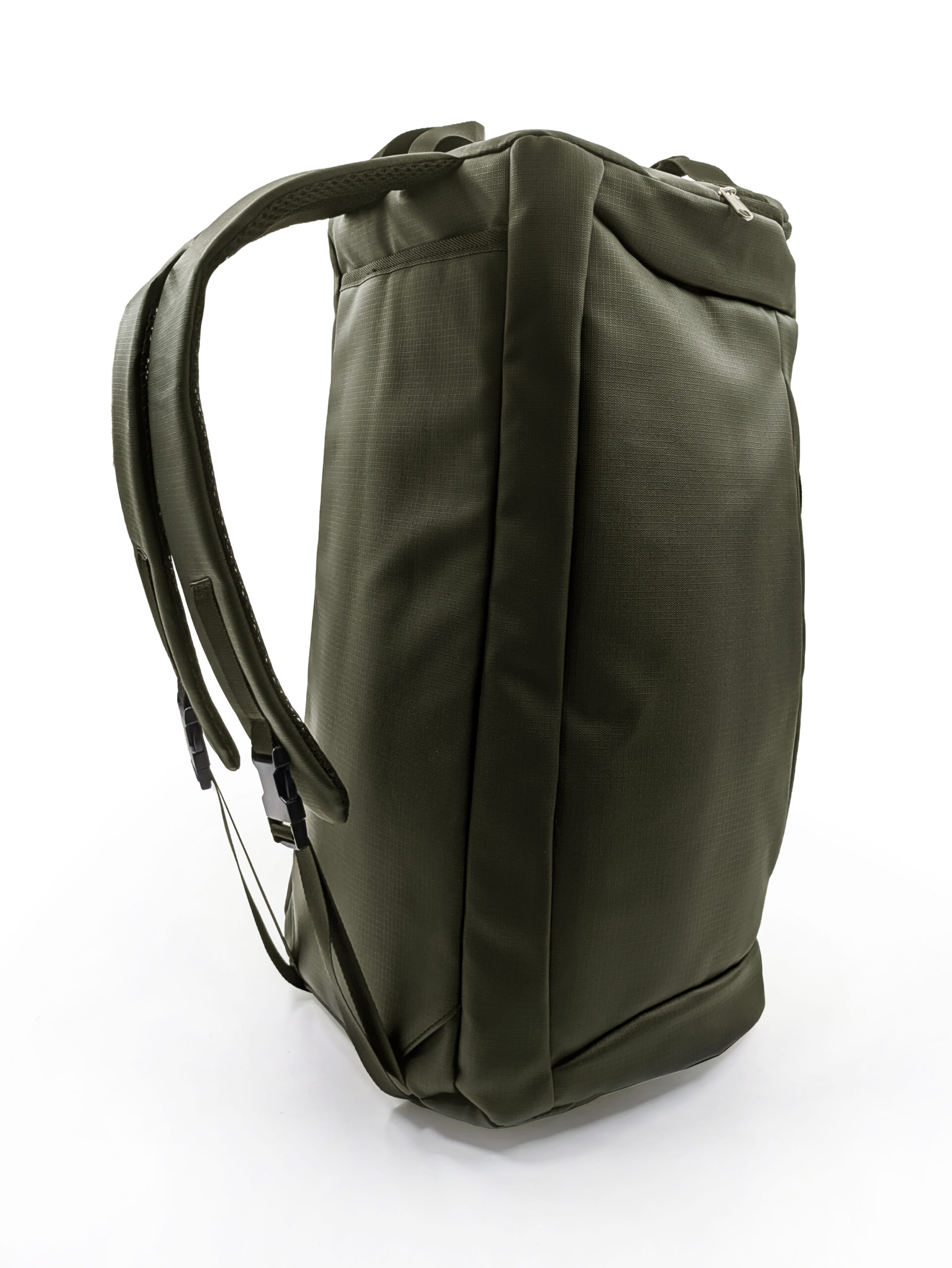Indossabile come zaino con spallacci a scomparsa, con manici o con la pratica tracolla.