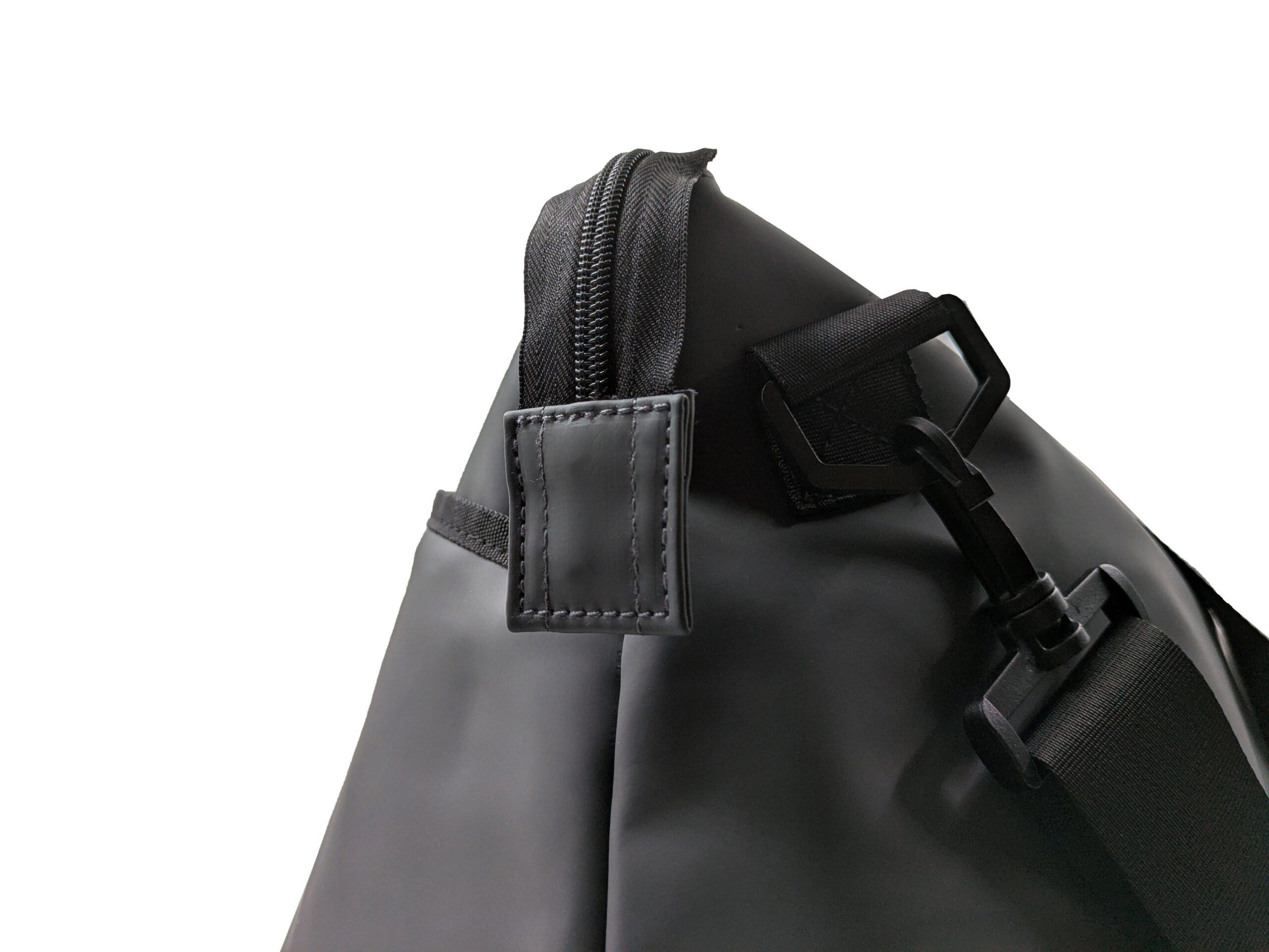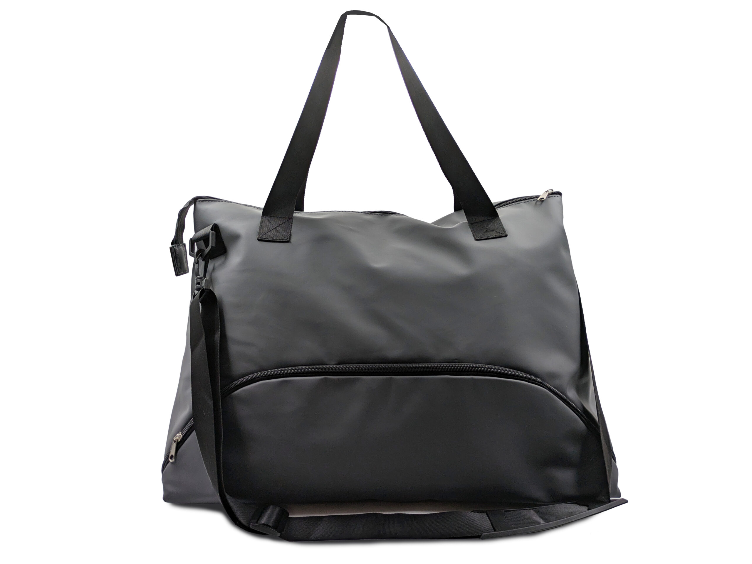 Sacca in tessuto tecnico, con tasca frontale a scomparsa e tasca sul retro portascarpe.