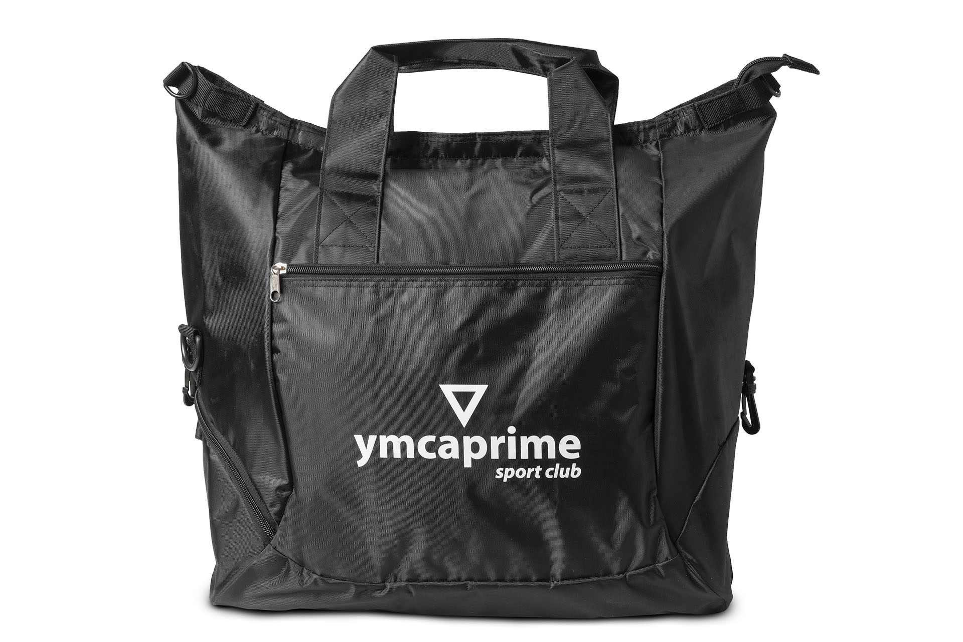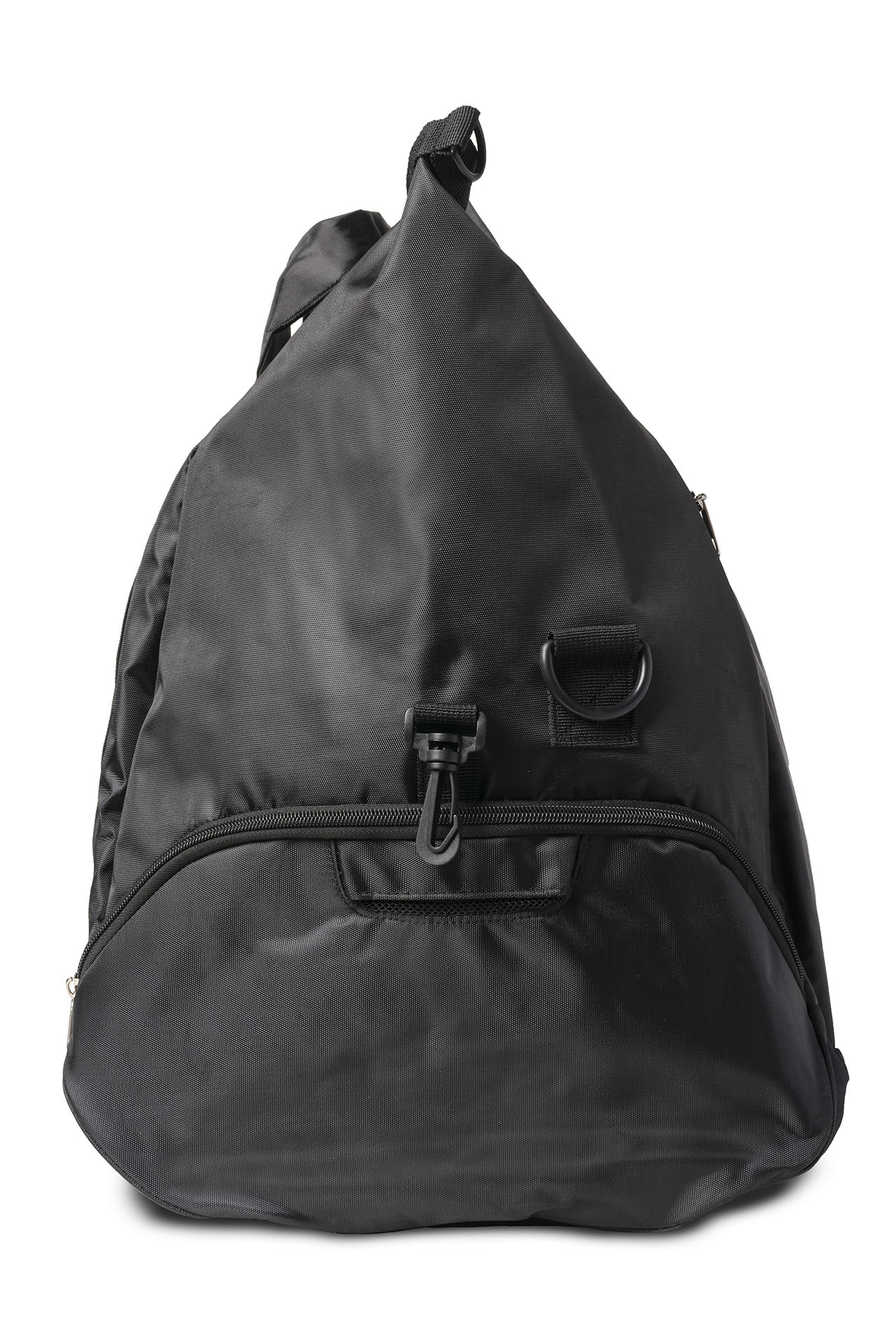 Sacca duttile con manici e tracolla regolabile, tasca laterale portascarpe e tasca frontale.